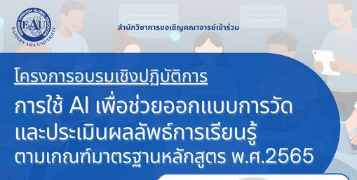 สำนักวิชาการ ขอเชิญคณาจารย์เข้าร่วมอบรมเชิงปฏิบัติการ "การใช้ AI เพื่อช่วยออกแบบการวัดและประเมินผลลัพธ์การเรียนรู้ ตามเกณฑ์มาตรฐานหลักสูตร พ.ศ. 2565"
